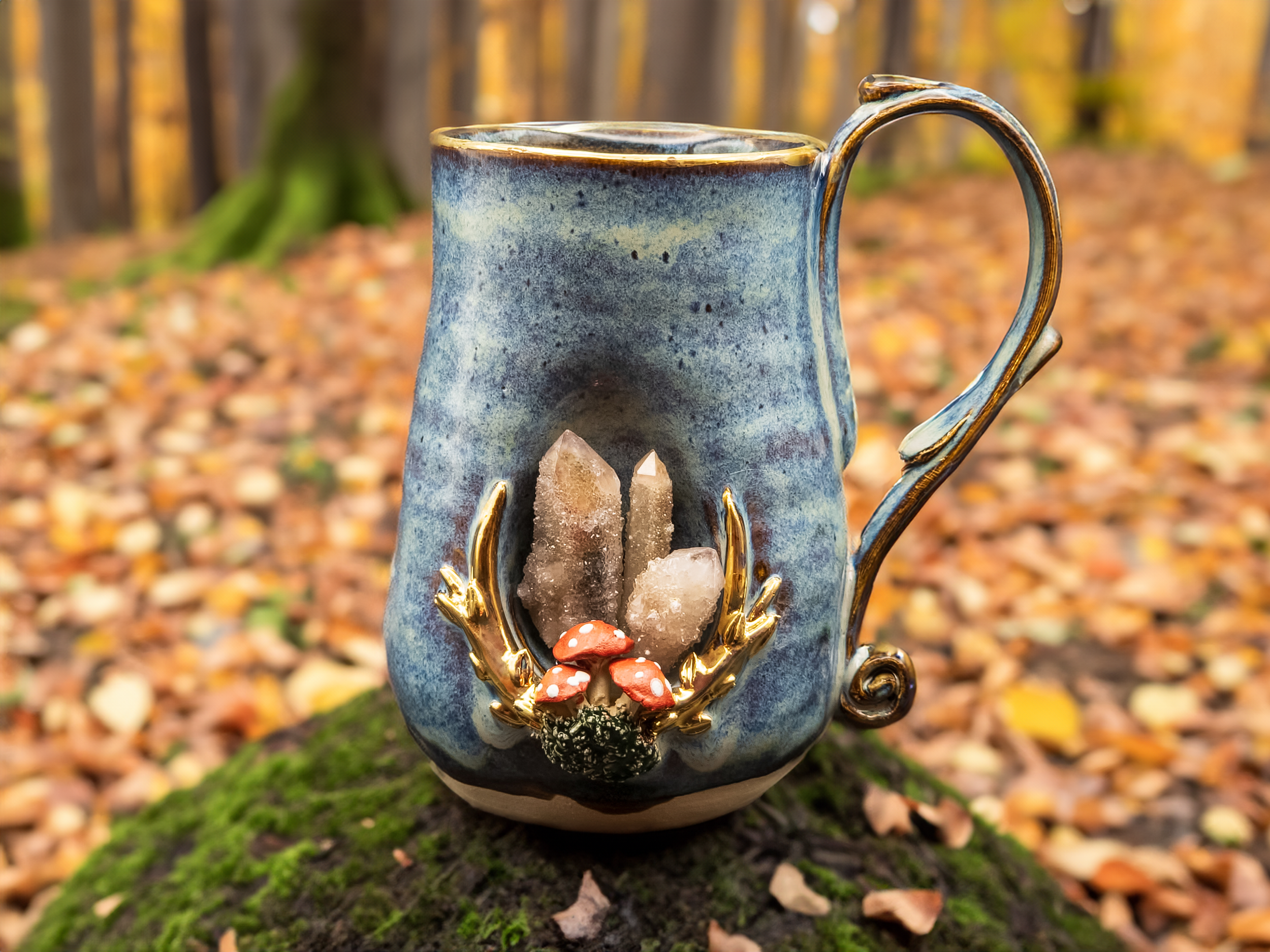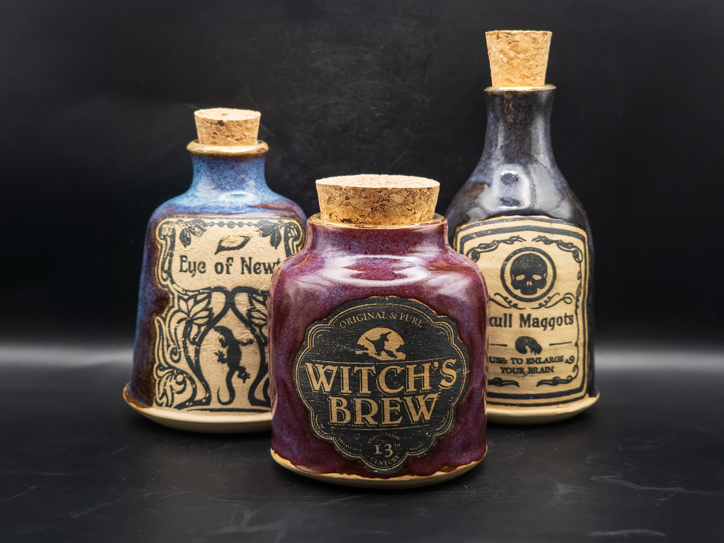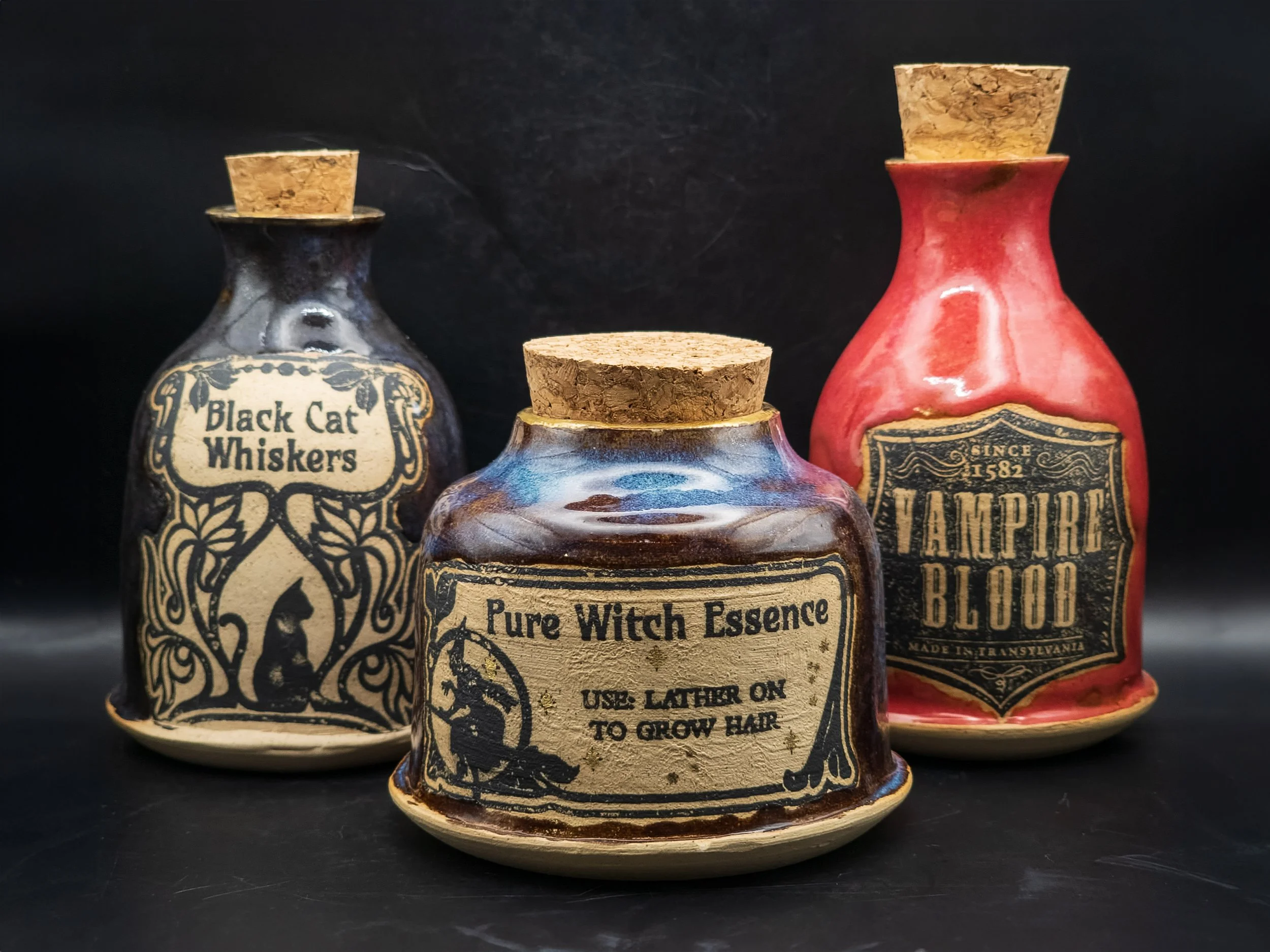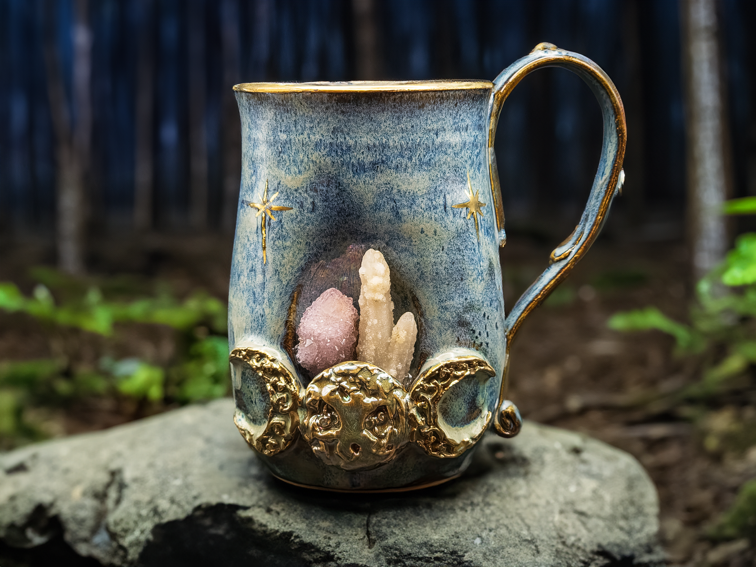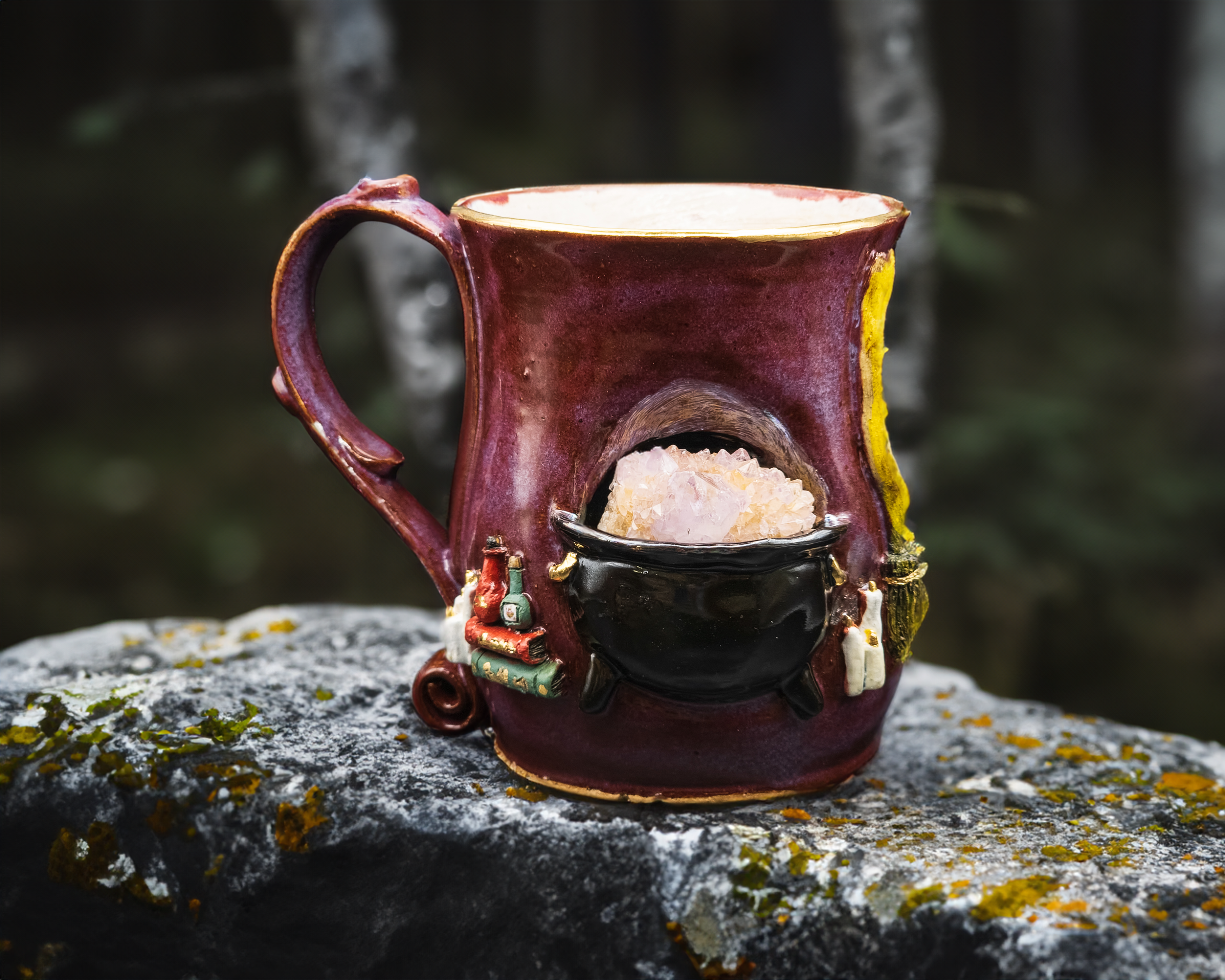 I also create mugs and cauldrons for you to embed intention and magic into your everyday routines. By incorporating crystals into your mugs and decorating them with the understanding and practice of colour magic, Vedic astrology, and symbolism, I help you bring these elements into your life. I create practical items for witches, including potion and herb bottles for building your own apothecary, incense burners and candle holders, altar bowls, and spell candle bowls to keep your altar safe and clean. I imbue my own practice into the items I make, filling them with love, creativity and positive energy.