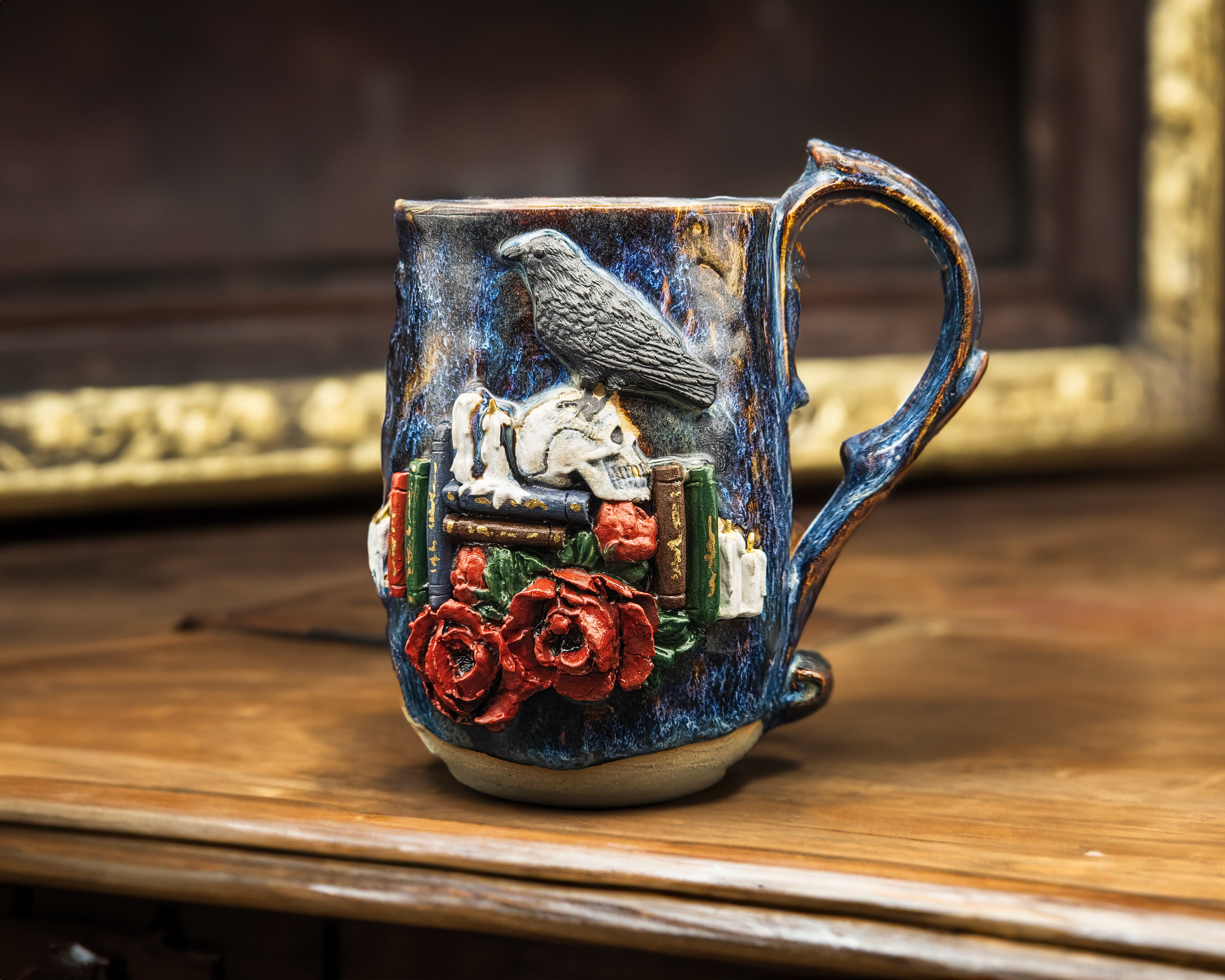 Obscuria Made was created to make the everyday magical. Making mugs and homeware for witches and fantasy lovers that is art and function together. From mugs with bookcases on housing all your favourite things to sculptures and mugs inspired by your favourite stories or folklore tales. From Mushroom Fae rings to hobbit doors and skeleton hands.